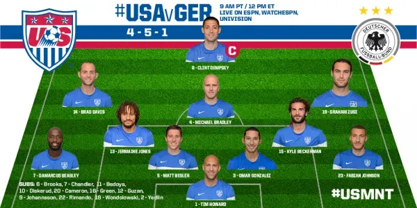 United States: Howard, Gonzalez, Bradley, Besler, Beasley, Dempsey (c), Jones, Davis, Beckerman, Zusi, Johnson