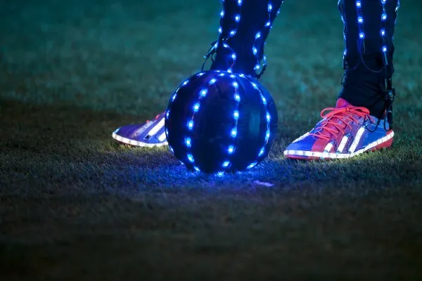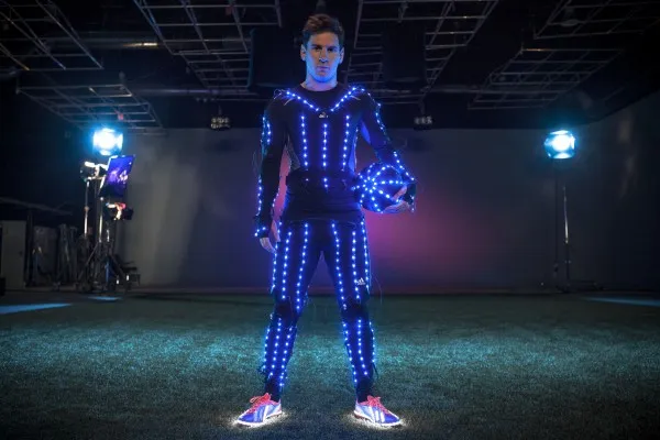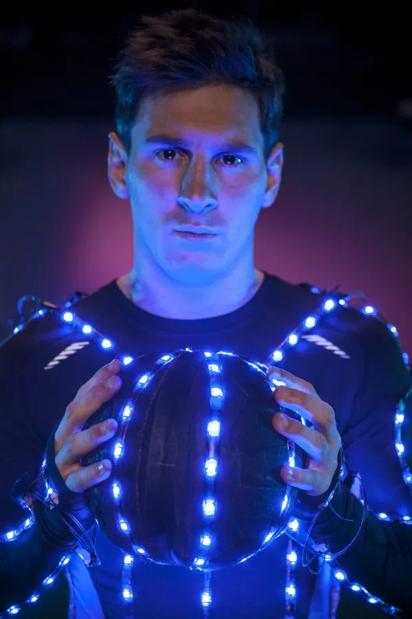 To promote his newest line of adizero f50 Messi football boots from adidas, Leo Messi recently put on a cutting-edge LED light suit to showcase his soccer moves, touch and speed.