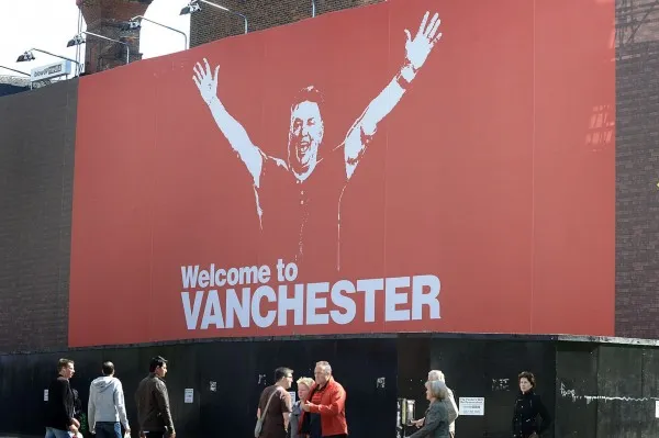 Now, a new billboard emblazoned with ‘Welcome to Vanchester’ has been put up in city centre greeting United’s new manager Louis van Gaal.