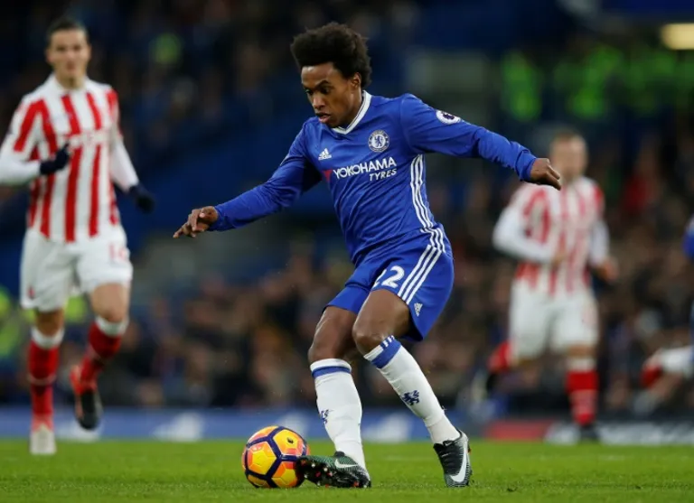 Stoke twice hit back to level after falling behind at Stamford Bridge, but Willian’s second goal and a late Diego Costa strike saw Chelsea match Arsenal’s run of 13 wins within the same season from 2001-02.