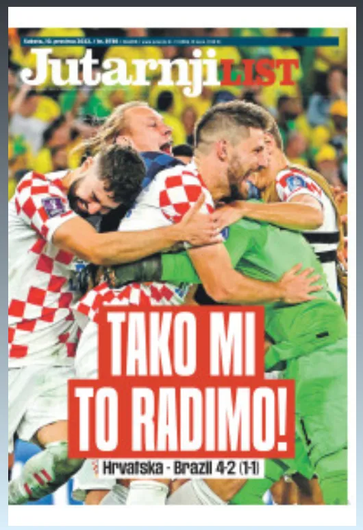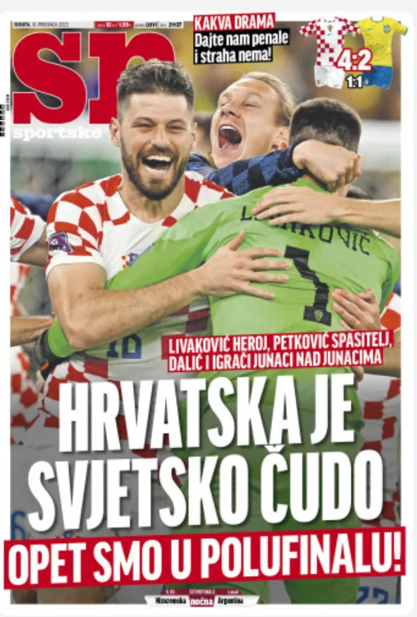 Sportske Novosti leads with “Croatia is a world wonder. We are in the semi-finals again”:
