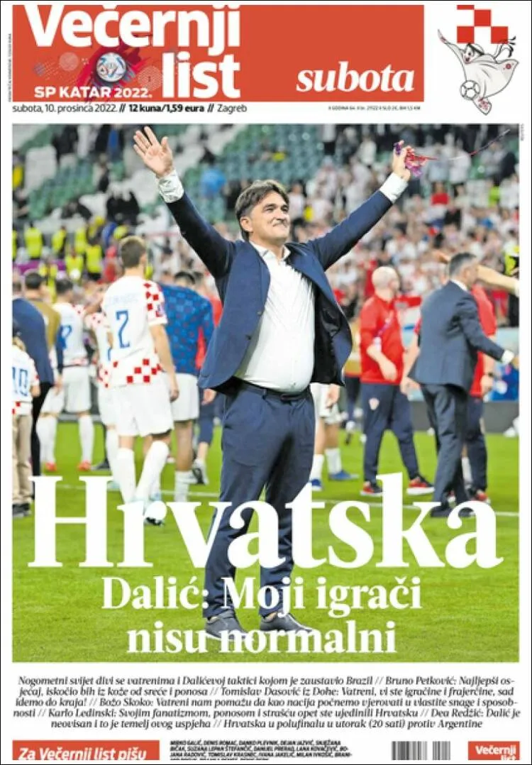 The Večernji List leads with the words of Croatia’s manager, and how many fans must feel about yet another incredible Croatian World Cup run “My Players are Not Normal”: