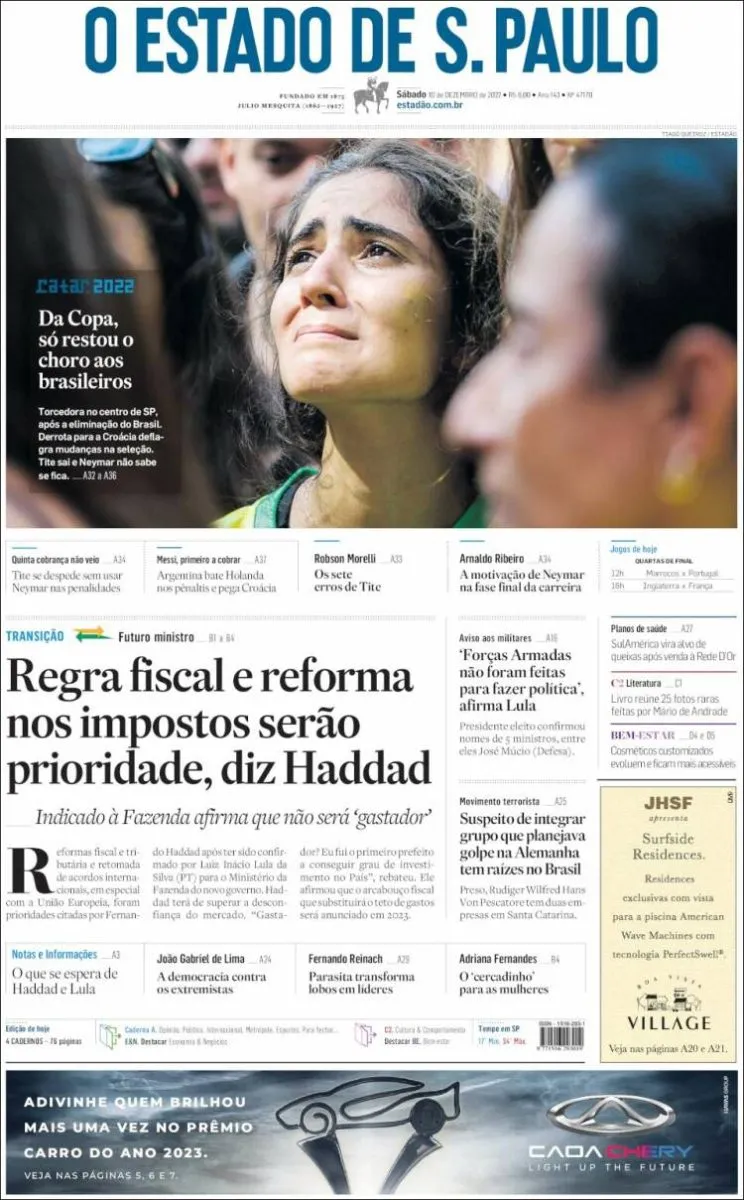 O Estado de Sao Paolo with a poetic headline, “All that’s left is Brazilian tears”:
