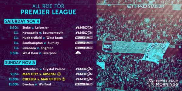 The top two in English football’s top flight will take on the teams currently occupying fifth and fourth, respectively. And while this will only be the 11th week of the Premier League season, already there’s a sense this day of football will be vital in the title chase.