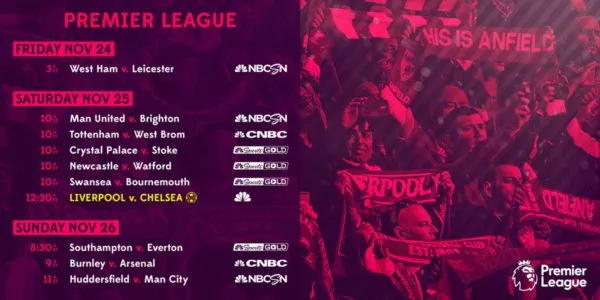 Sunday, November 26, 3 p.m. ET, beIN SPORTS, Sling World Sports and fubo Premier (free trial)