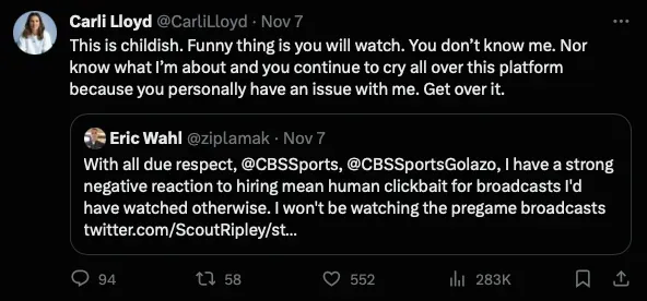 Not everyone is happy about Lloyd joining CBS NWSL coverage