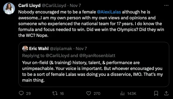 Some fans, however, are appreciative of Lloyd’s direct and no-nonsense style of analysis. Wahl’s comparison to Alexi Lalas is not entirely off-base. The former USMNT player and pundit shares a similar “love them or hate them” aura when it comes to soccer broadcasts in the US.