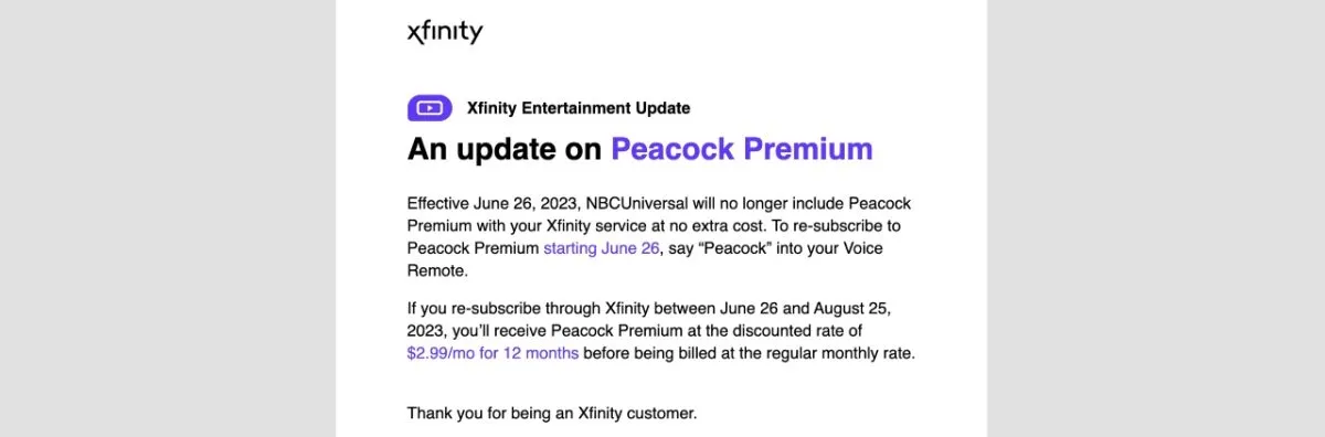 Comcast customers have recently learned by e-mail that free access Peacock Premium is coming to an end. The cable provider previously included the streaming service alongside access to their traditional plans. Nevertheless, Xfinity will now end the free service on June 26th, 2023.