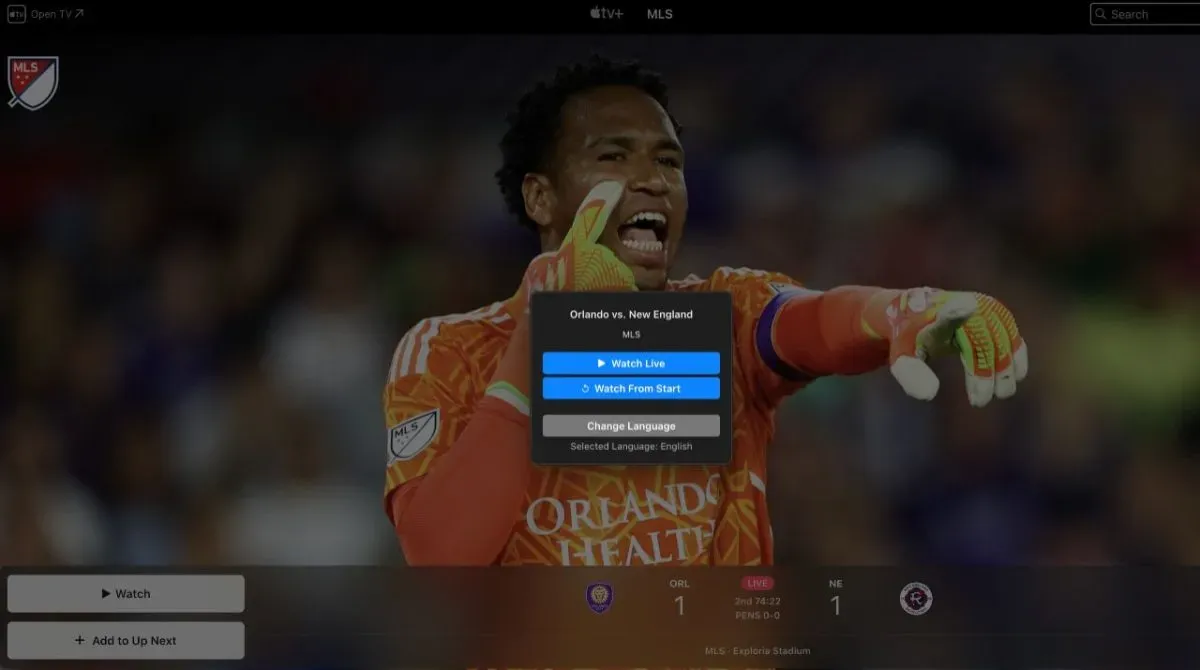 MLS Season Pass also allows you to select the language preference for the broadcast (see above screenshot).