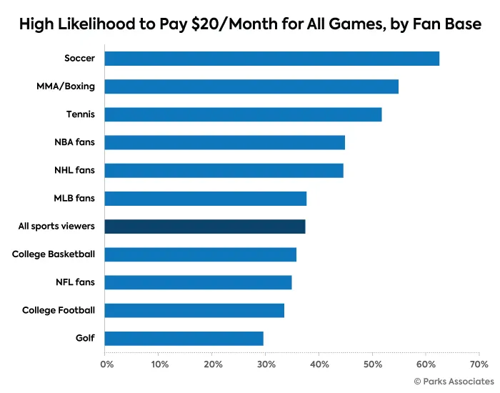 Parks Associates, a market research and consulting firm, released information that demonstrates sports fans’ willingness to pay more than $20 per month for all games.