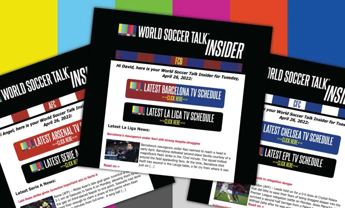 Our daily email newsletter, World Soccer Talk Insider, continues to evolve. We’ve been personalizing the email based on your favorite team and the league that you watch most often.